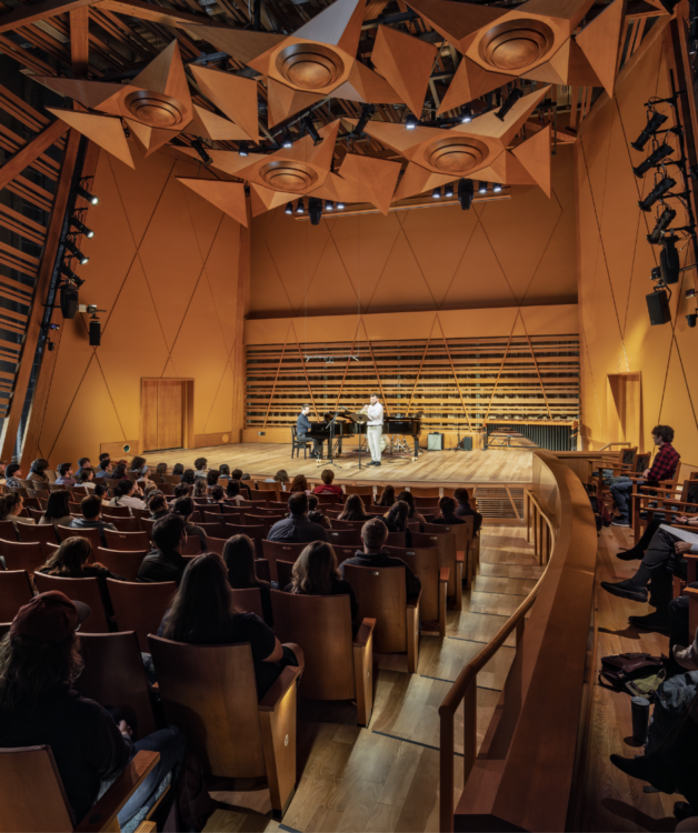 - 200-seat performance hall, practice rooms, piano lab and teaching studio, flex studio, classrooms and offices