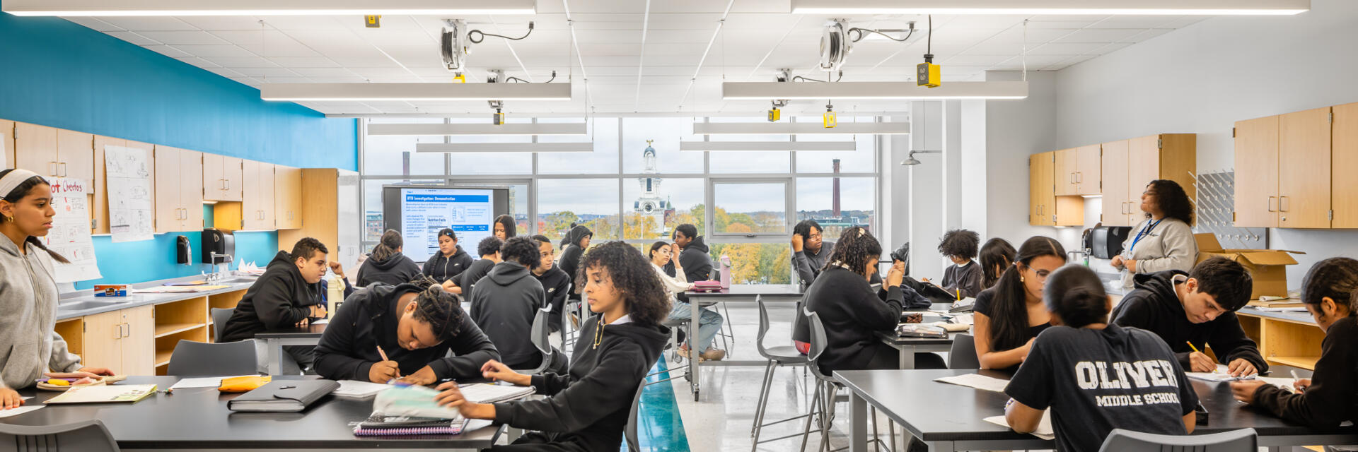 The new Henry K. Oliver School unifies the district’s elementary and middle school populations within a single campus. The project replaced the existing school while preserving a portion of the historic structure, creating a new learning environment that balances contemporary educational needs with respect for the site’s legacy. Delivered in partnership with the Massachusetts School Building Authority, the project supports long-term educational growth while meeting state funding and performance requirements.